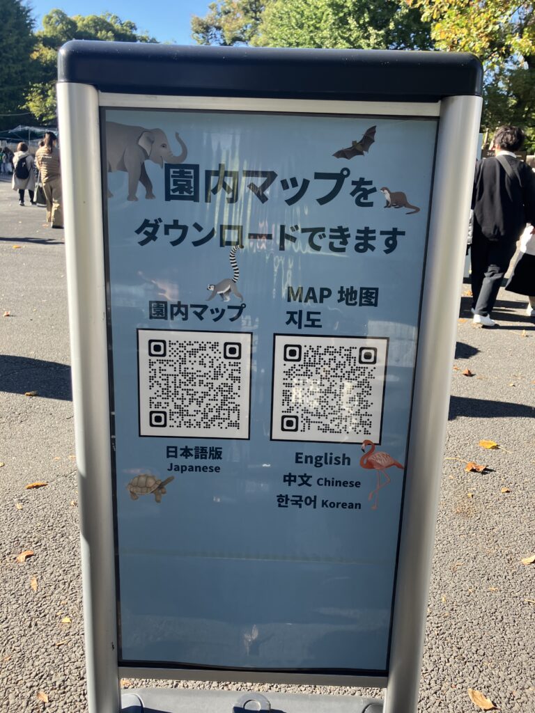 上野動物園マップは入口のところに置いてありますが、QRコードでダウンロードもできます。