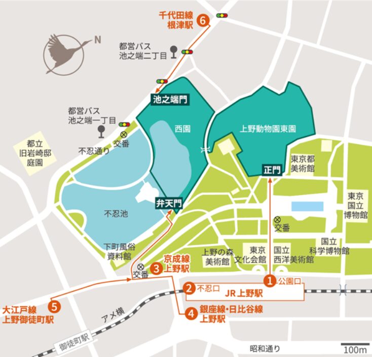 ⬛︎池之端門→東京メトロ千代田線根津駅から徒歩5分