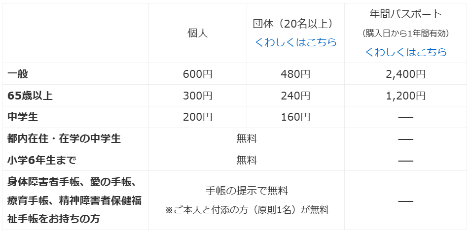 →月曜日が祝日・都民の日の場合は、その翌日が休園日。