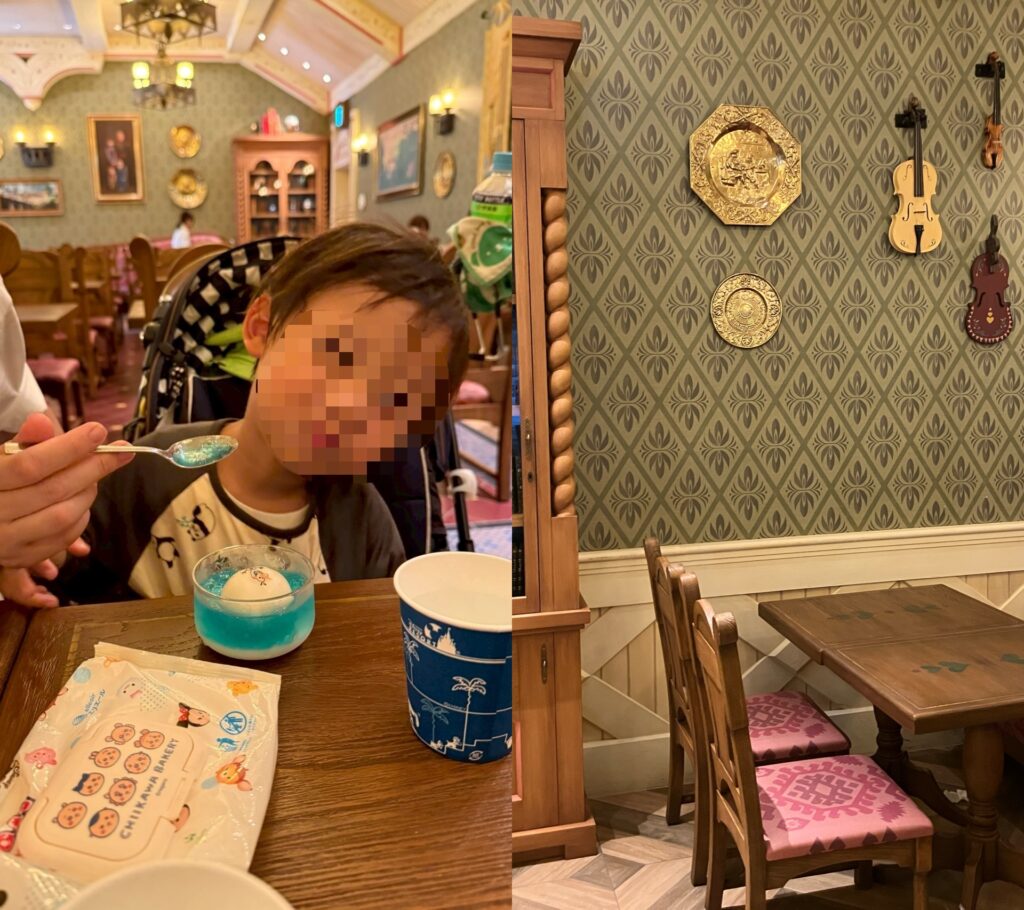 ちなみにわが家の隣のテーブルではアナのドレスを着た女児が御両親とロイヤリティなお食事タイムを堪能されておりました。