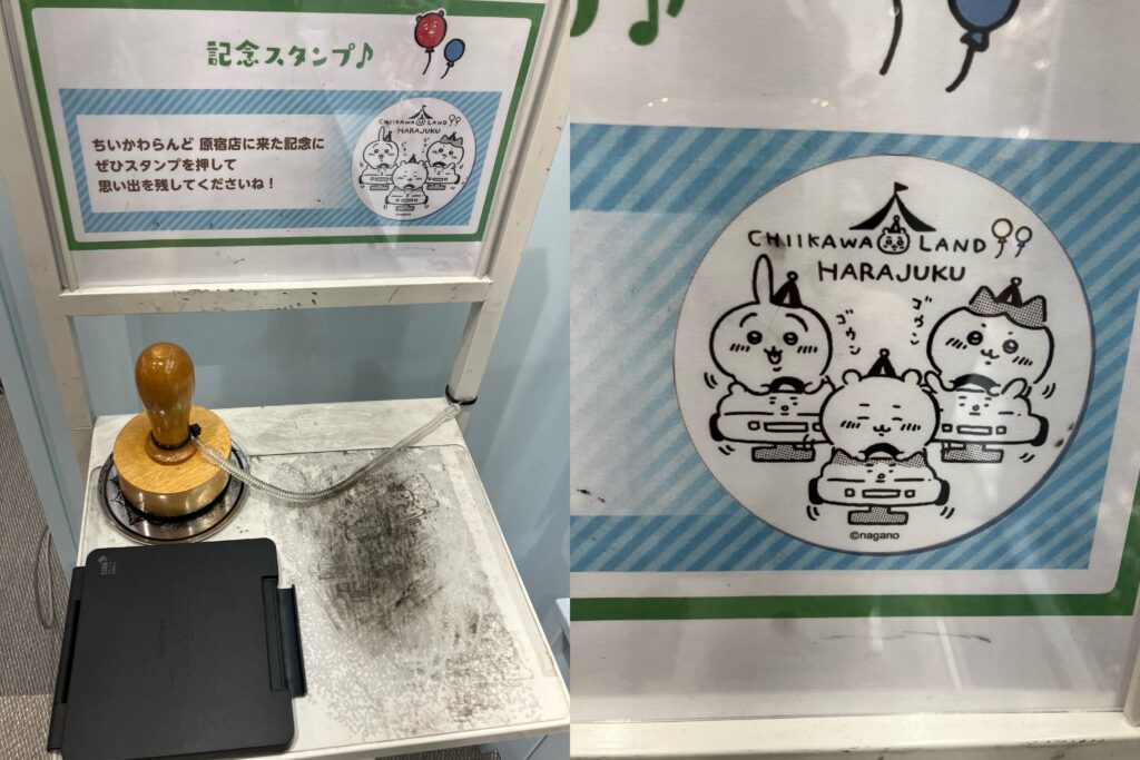 店頭に「ちいかわらんど原宿店記念スタンプ」があります。
