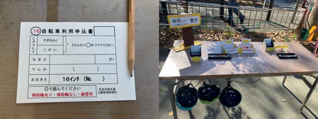 貸出交通遊具を利用する際はすべて用紙を記入して職員さんに渡します。