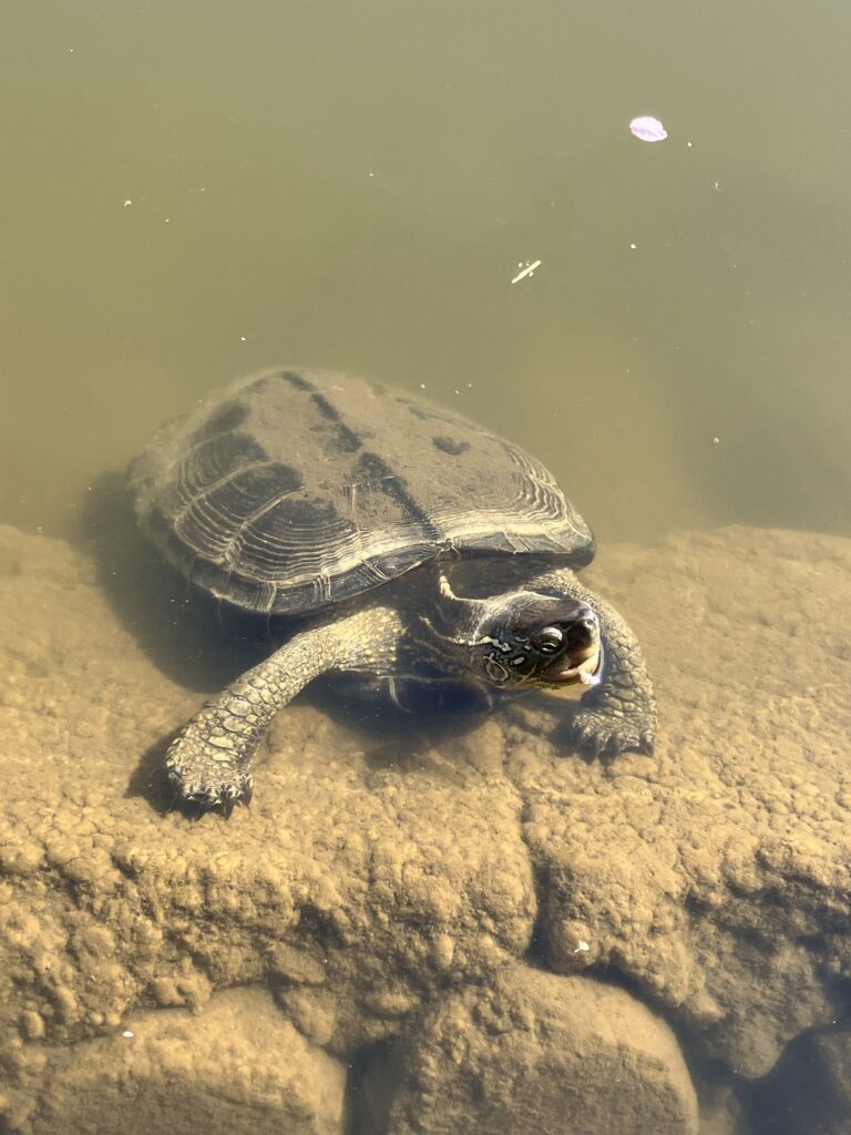 亀さんを発見した子どもたちは大はしゃぎ。