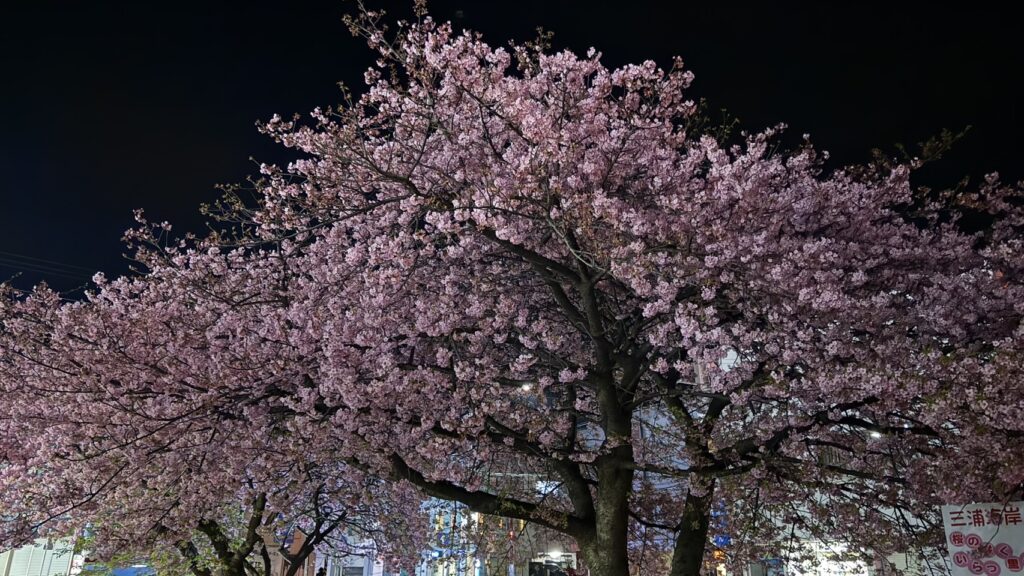 2026年は2月5日~3月3日まで「三浦海岸桜まつり」が開催され、夜間ライトアップやテント村も楽しめます。
