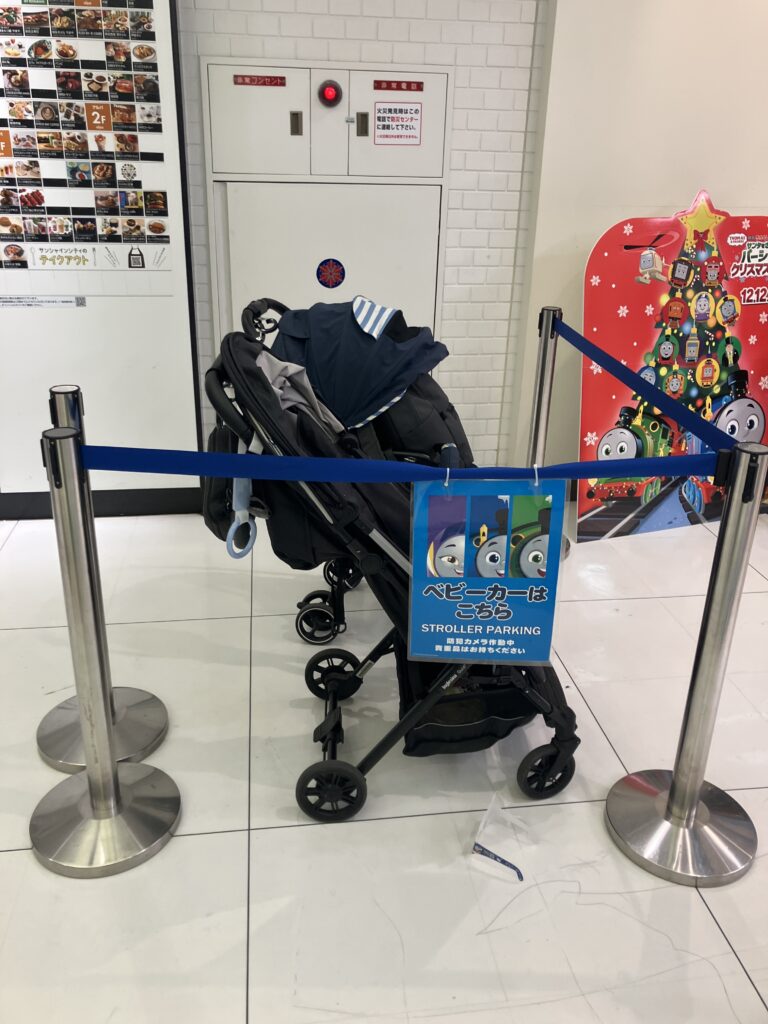 お店の前にはベビーカー置き場がありました。