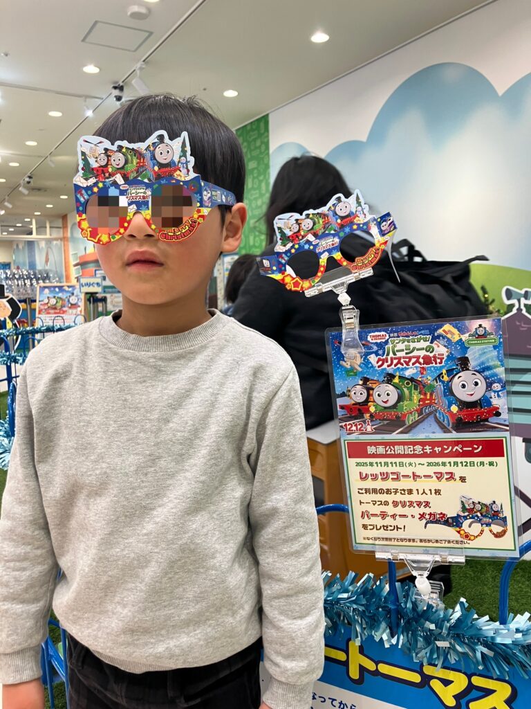 映画公開記念キャンペーン中でトーマスのクリスマスパーティーメガネをもらったよ☆