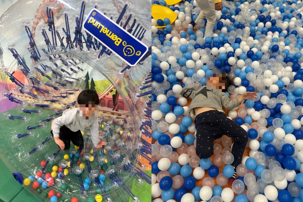 普段あまり身体を動かさない長男が走り回りものすごい汗だくになって動いていたのと、普段じっとしていない次男がものずごい集中力でおもちゃで遊んでいたのに驚きました。