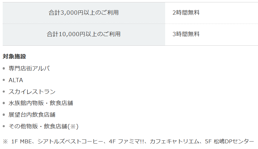 【お買い物・飲食での駐車場サービス】