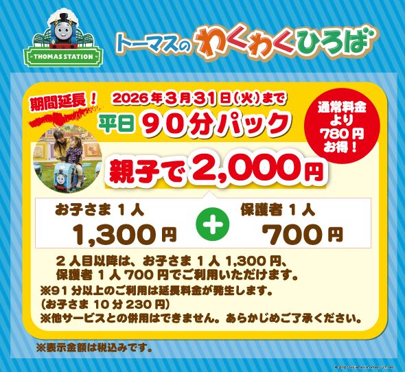 2026年3月31日まで、平日はかなりお得に遊べます。